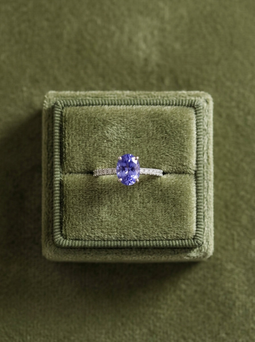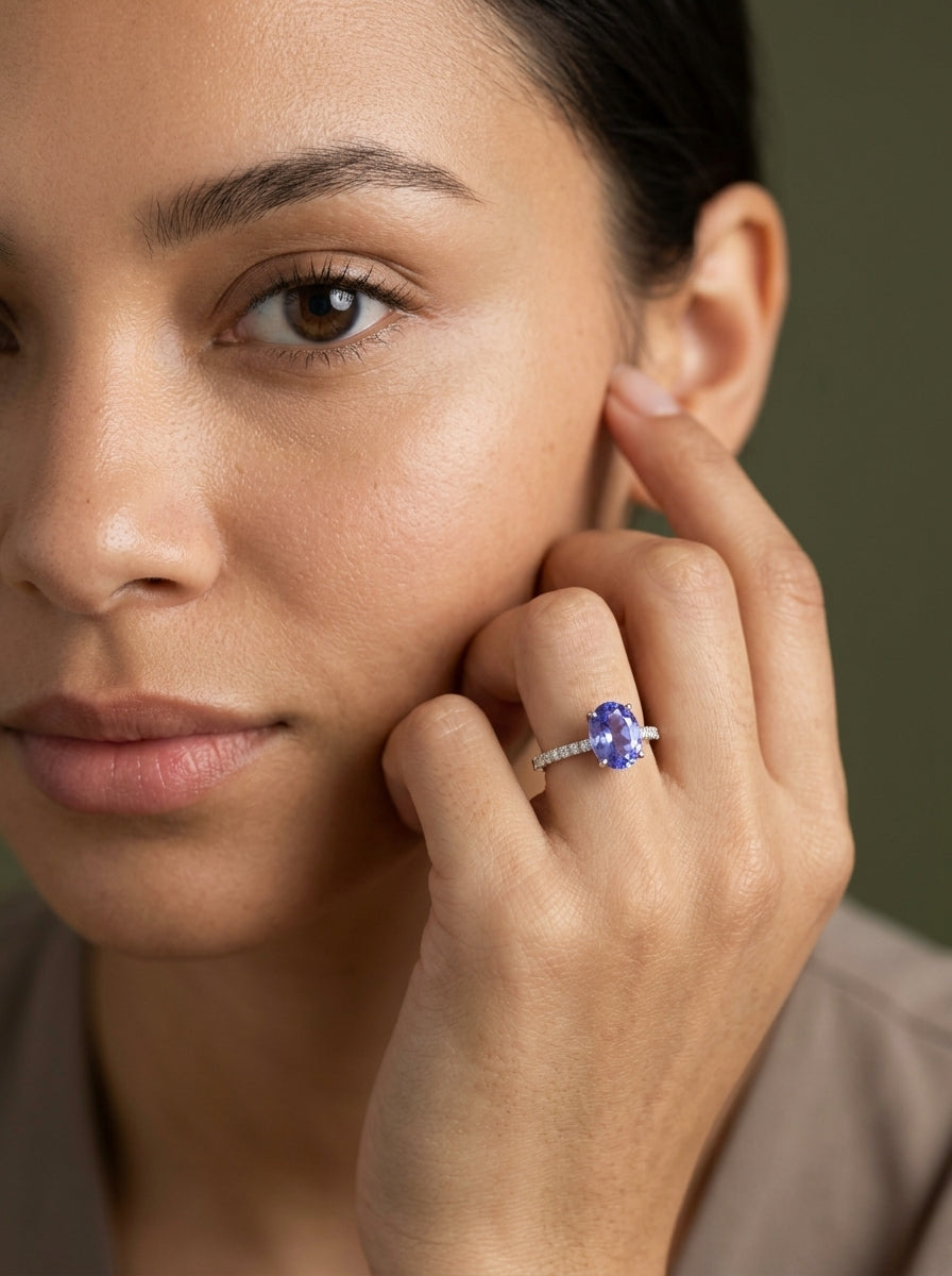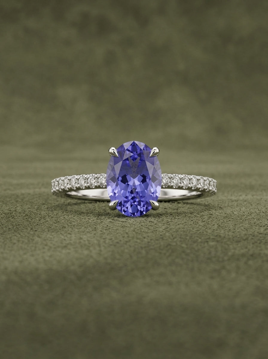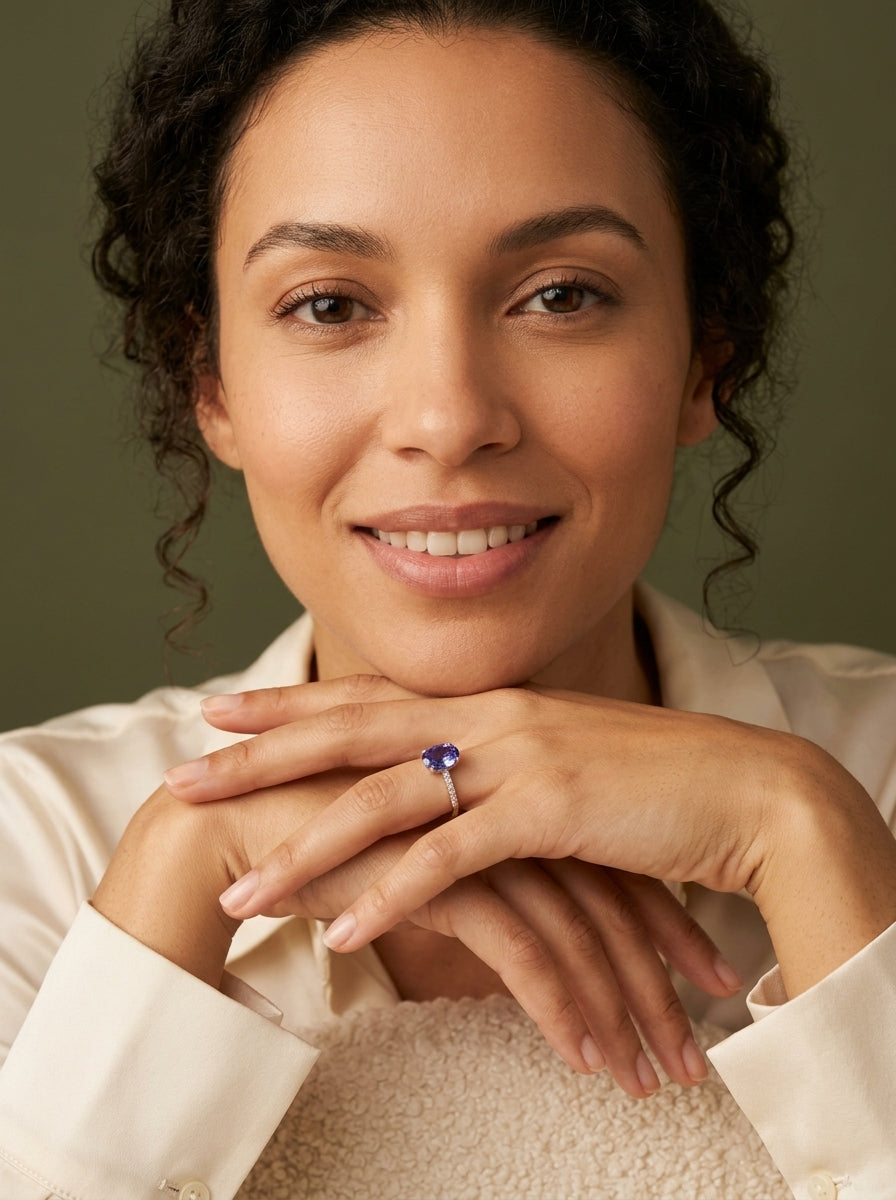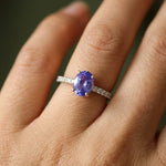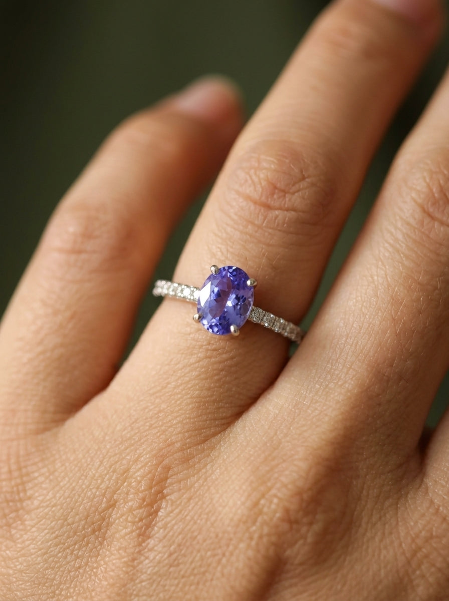 Anillo de tanzanita oval de 1.57ct con diamantes naturales en la banda